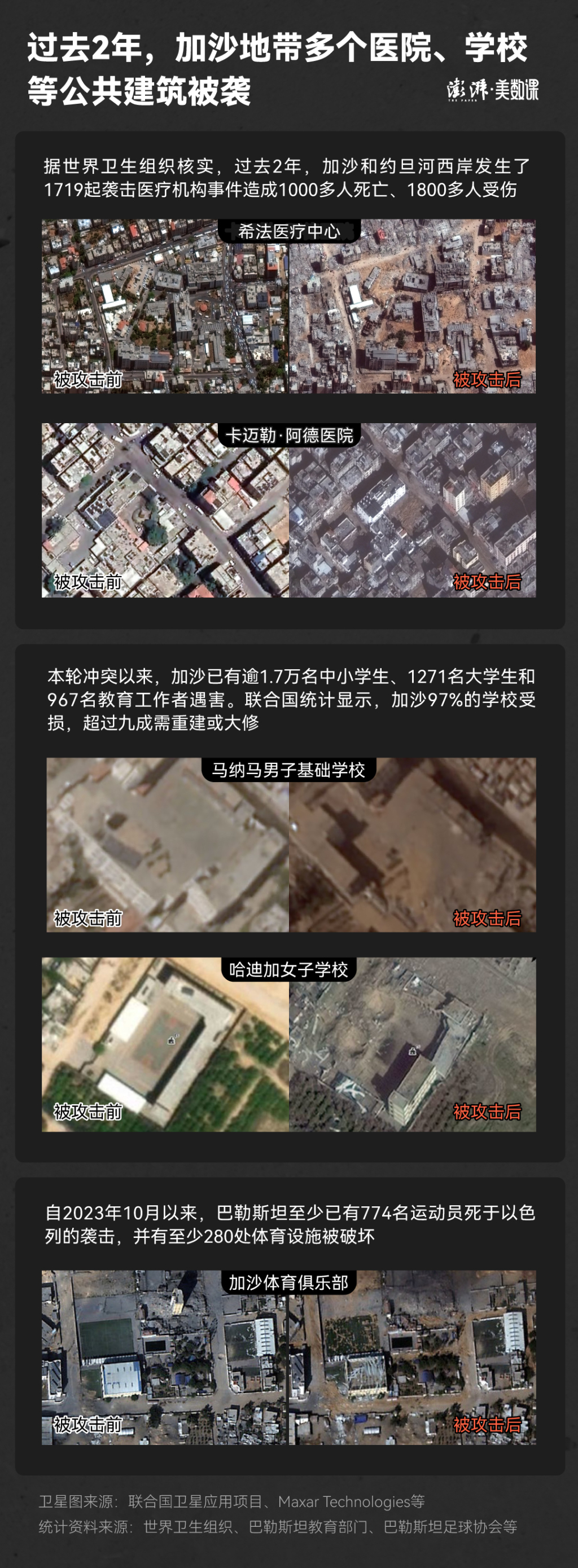 另外,除了轰炸等战争行动带来的平民伤亡,以色列今年3月开始全面封锁了加沙的物资援助,称哈马斯窃取援助以资助其军事行动。据新华社报道,联合国有关机构在8月22日发布最新粮食安全阶段综合分类分析报告说,加沙地带有超50万人处于饥饿中。