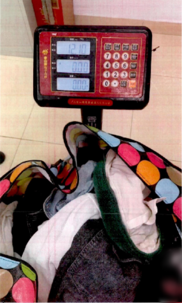 被告人从楼上扔下的大包衣物净重12.1公斤。上海市松江区人民检察院供图