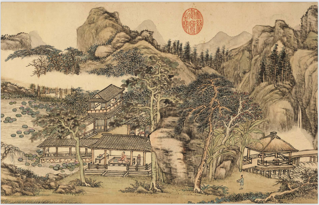 清代宫廷画家张宗苍的作品《梧馆新秋》(局部)