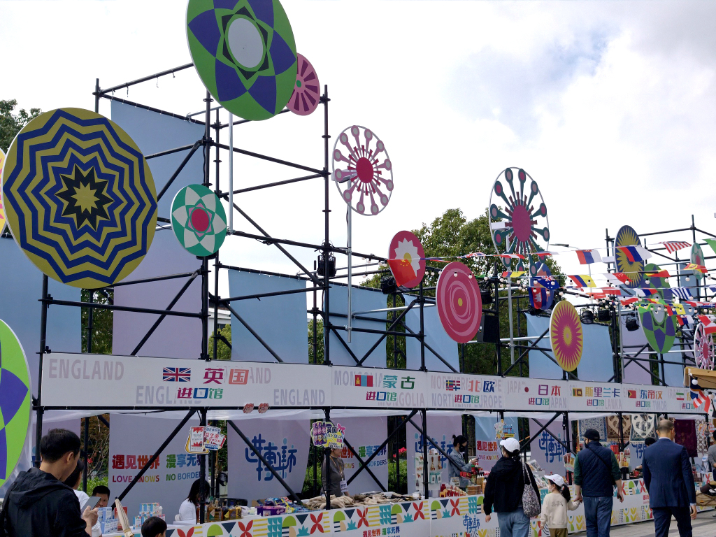 2025年11月5日,上海,第八届中国国际进口博览会在国家会展中心开幕,场馆外的各国展台。视觉中国 图