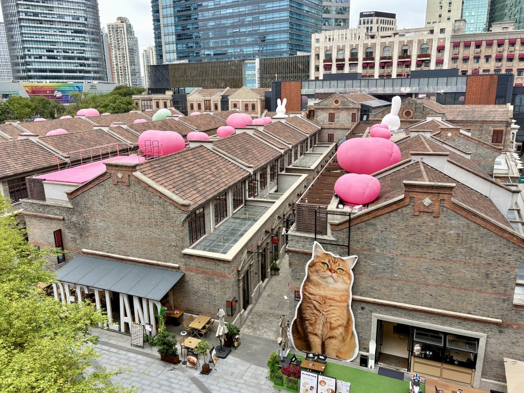 两三公里外,沿着滨港商业中心的观景步道“甜爱廊”拾级而上,今潮8弄完整保留修缮的8条弄堂与66幢老建筑尽收眼底,36颗巨型爱心从弄堂屋顶“冒出头来”,憨态可掬的小兔子出没其间。连续五个周末,10余场不同主题的屋顶音乐会在此上演。