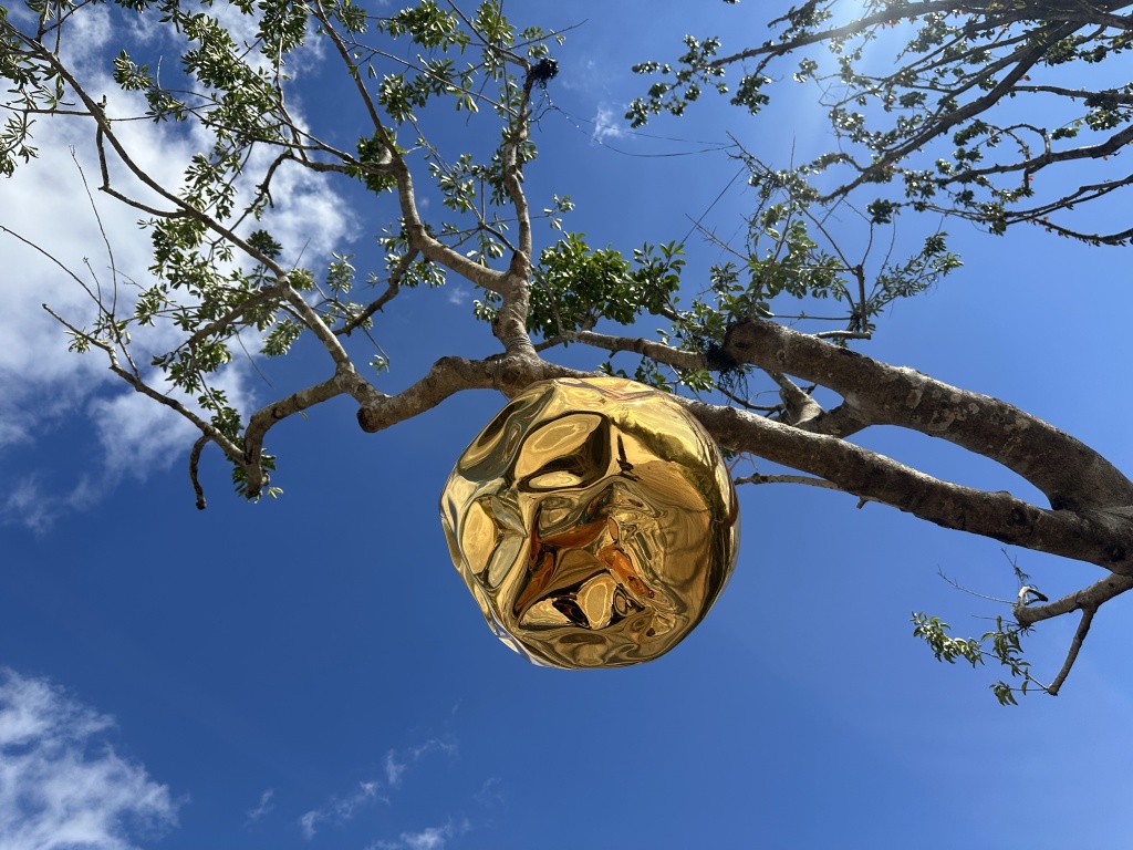 苹果在各种文化中都有着丰富的意涵,许正龙的作品《金苹果》,苹果饱满与凹陷兼具,金光闪闪的表面照见每位观者。