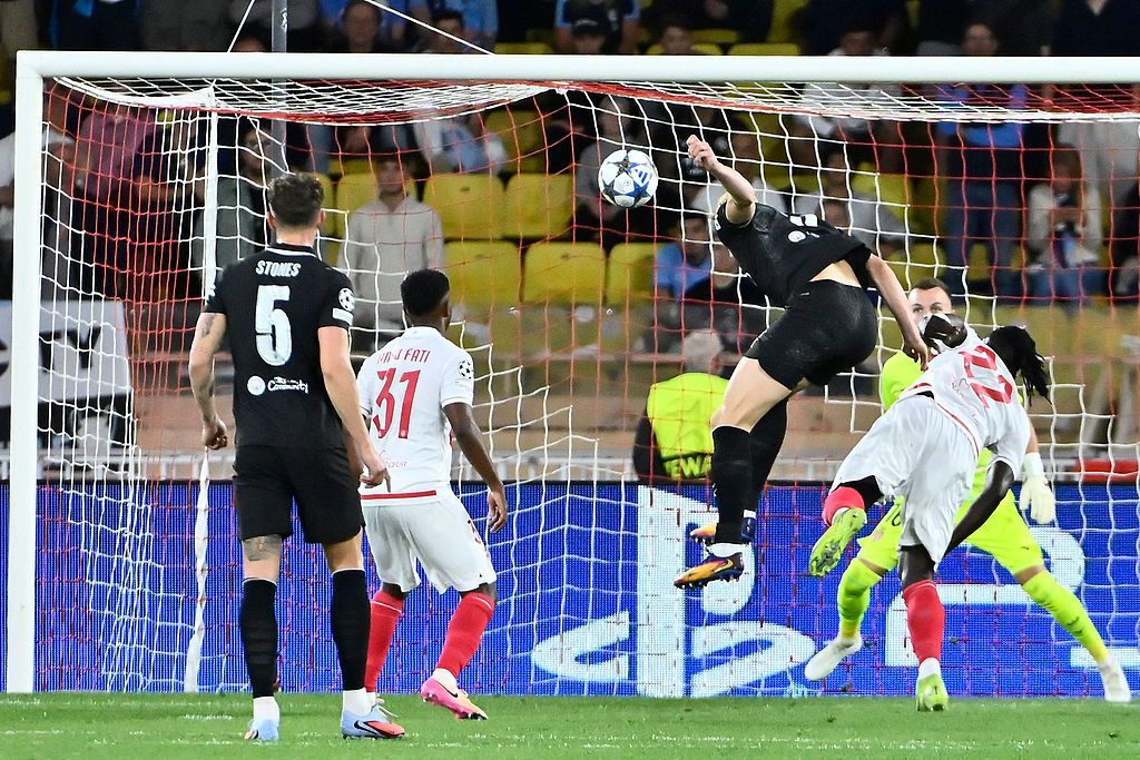 第90分钟,冈萨雷斯送点,戴尔点射绝平,摩纳哥2比2战平曼城。