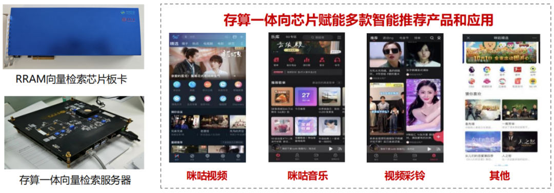 在RRAM方面,中国移动联合清华大学将RRAM存算一体向量检索芯片应用到智能视频推荐场景,基于存算一体软件计算引擎实现视频向量在VD200 RRAM存算一体向量检索芯片的部署和查询,支持百万级向量部署和检索,视频推荐召回服务吞吐率达2万次/秒,检索性能达到传统服务器4倍。