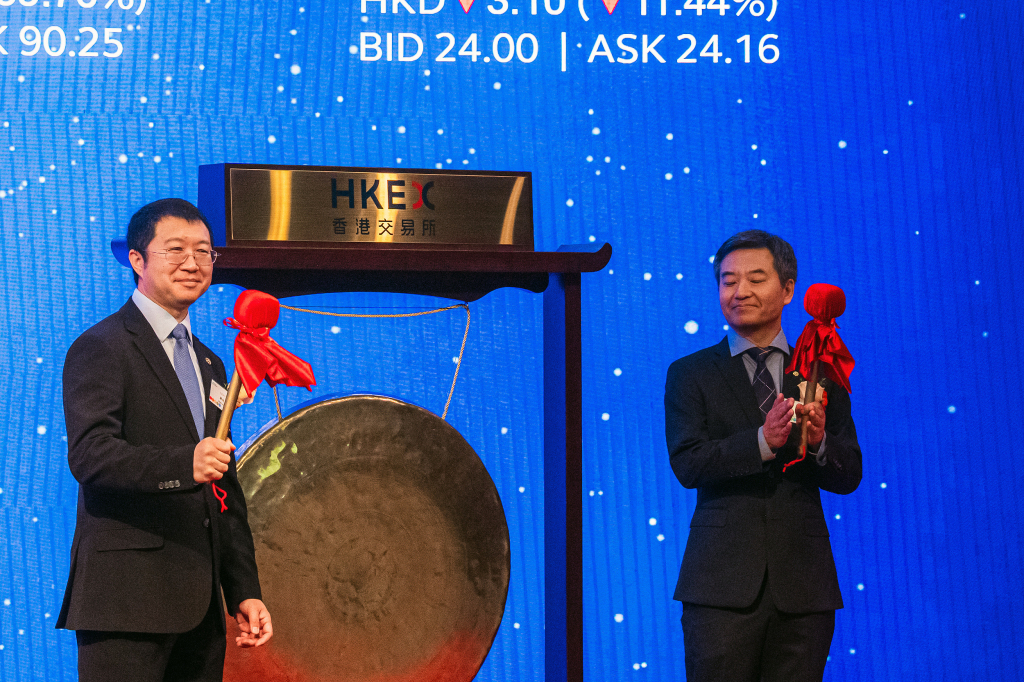2025年11月6日,香港交易所,文远知行首席执行官韩旭(左)在公司上市仪式上。 视觉中国 图