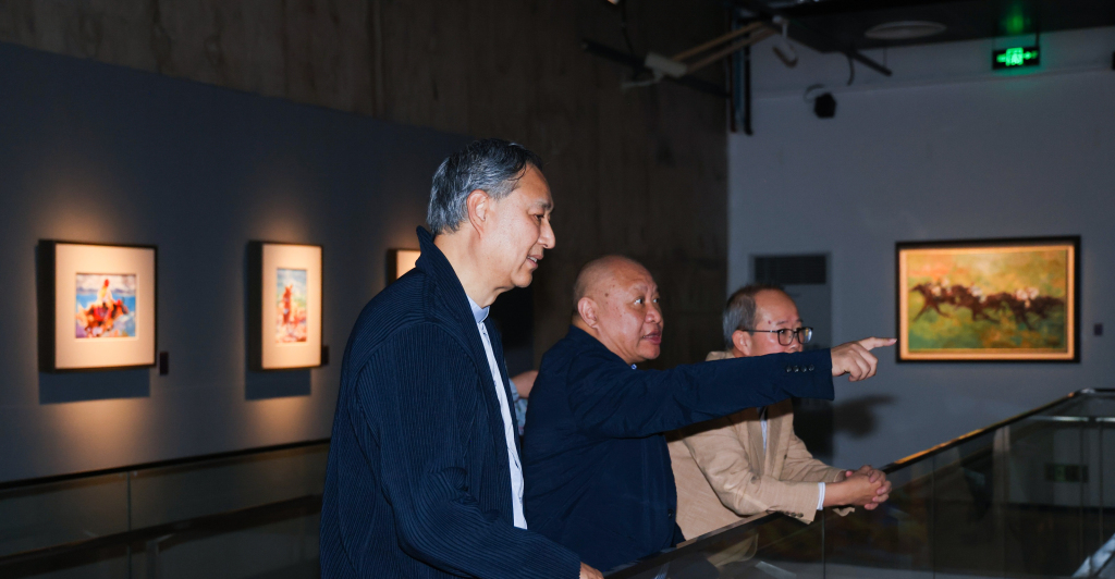“火舞锦缠”中的核心作品《火舞锦缠》(六联画)是尺幅最大的一件作品,高2米,长7.2米,气势磅礴,展现了生命原始的热情与能量变革,又寄寓艺术家对时代的美好祝愿。六联画之间既浑然一体,又可独立成篇,形成丰富的视觉叙事层次。
