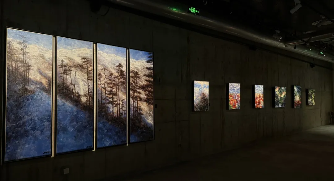 “云山苍茫”则体现了俞中保对中国传统山水画的当代表达。以油画材料再现中国长卷画的恢宏气象,在笔触与色彩间,构建出既有崇高肃穆之感,又蕴含东方内敛文气的形神交融之境。