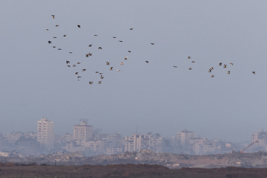 当地时间2025年11月18日,从以色列南部看到的加沙地带,鸟儿飞过。联合国安理会昨日通过一项决议,其中包括在加沙地带设立一支临时国际稳定部队(ISF)。视觉中国 图