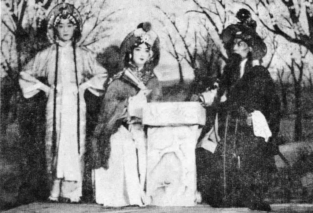 《西施》剧照,中间为梅兰芳饰演西施,右为王凤卿饰演范蠡