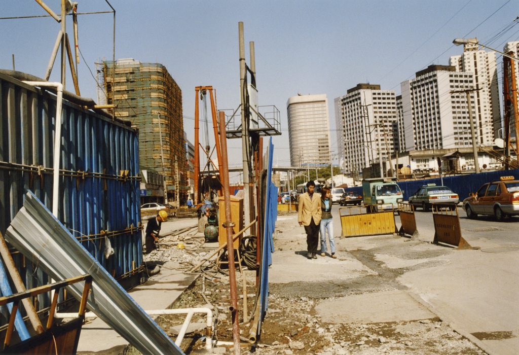 第六篇,我们将呈现日本摄影师尾仲浩二的作品与作家君天的文字。尾仲于2004年第一次来到上海,他当时从住的酒店出发,靠着地图,搭乘公交,用彩色照片带着观众回到一幕幕城市正在生长的现场。胶片泛黄的色调属于记忆,记忆里,二十年前的上海总有着一处又一处工地。记忆的更深处是对上海人的印象,他在邮件里回复,“我想,能够接纳这些外来者的宽容心态,或许就是上海人本来就具备的一种特质吧。”