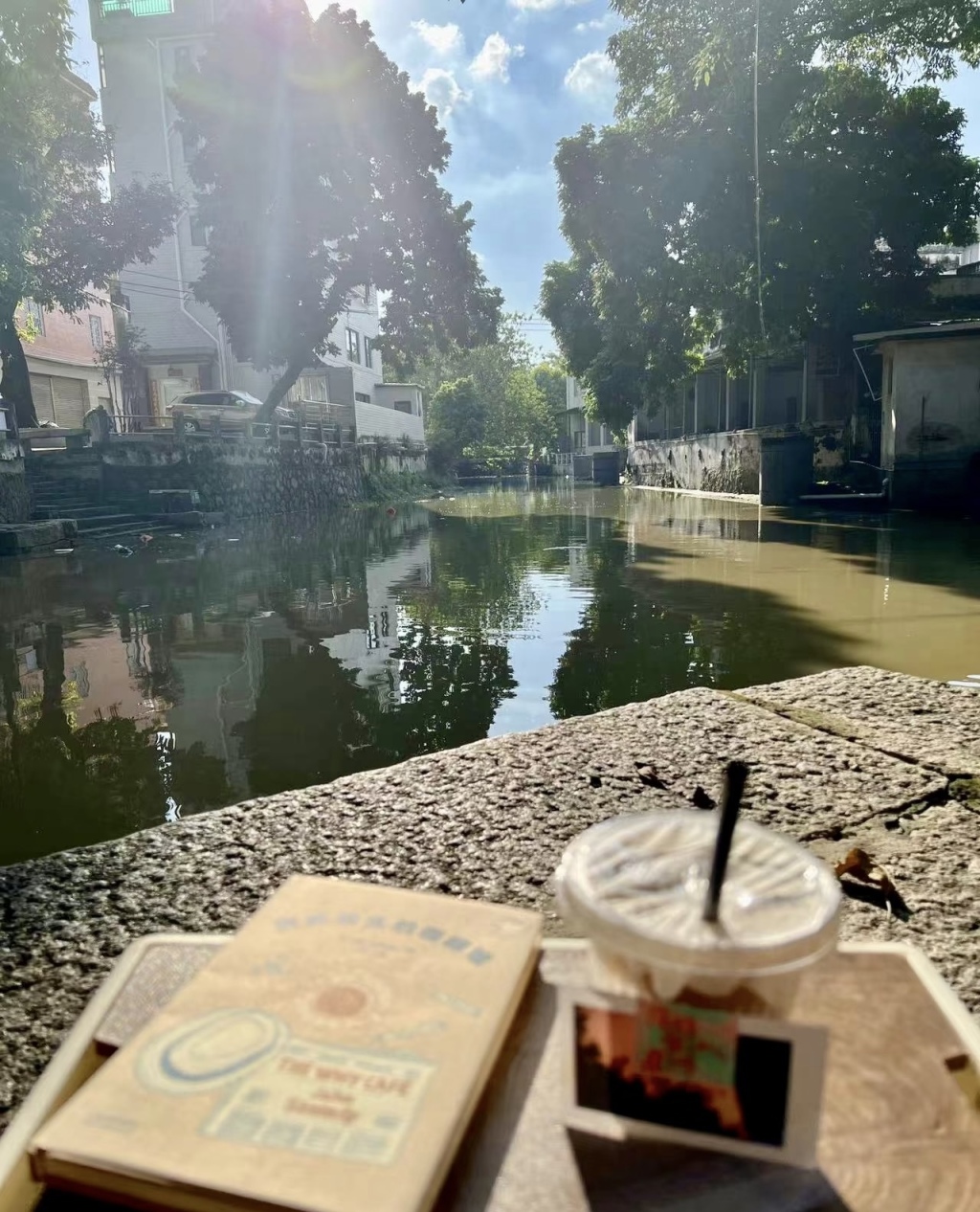 她喜欢顺德唾手可得的烟火气、邻居间真实的“活人感”,以及宠物友好的自然环境。在这里,她能静心阅读,减少社交,更多地向内探索。她常去村里或镇上散步,买一杯路边柠檬茶;有时也去长寿村、古朗村看艺术空间,周末参加读书分享会,随意品尝人均几十元的地道美食。即便深夜,街头大排档依然热闹,人们有说有笑。她说,这是跟东南亚最不同的一点,即便是单身女性也敢半夜在街头散步吃大排档。